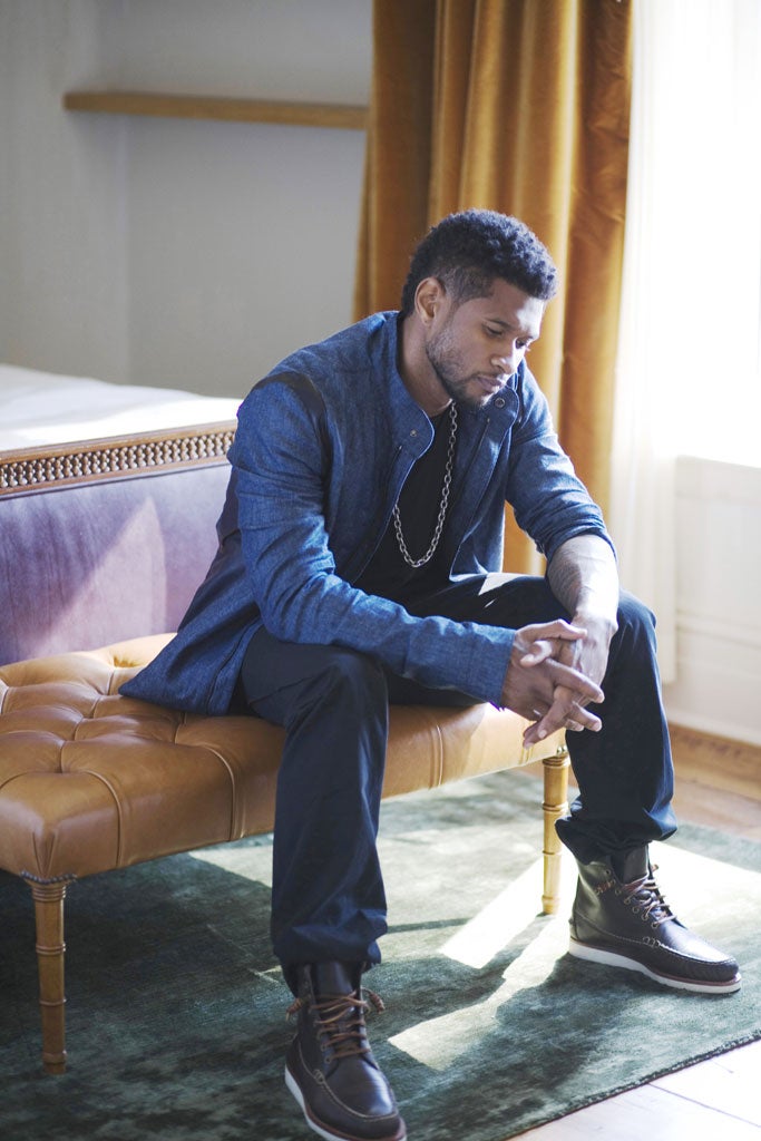 This lineage is not, on paper, the kind one imagines a man wanting to ballyhoo so loudly. Especially considering Usher's immediate background. Indeed, the businessman, one-time child star, hit machine ("OMG" with Will.i.am, "Without You" with David Guetta, "The Christmas Song" with Bieber, and "You Make Me Wanna...", "Yeah!", "Burn" and "DJ Got Us Fallin' In Love" with himself), actor (he's playing boxer Sugar Ray Leonard in an upcoming biopic) and mentor/patron of Bieber doesn't seem to know much about his ancestry. Of the first Usher Raymond, all he manages is a vague, "I know he was a very passionate man..."