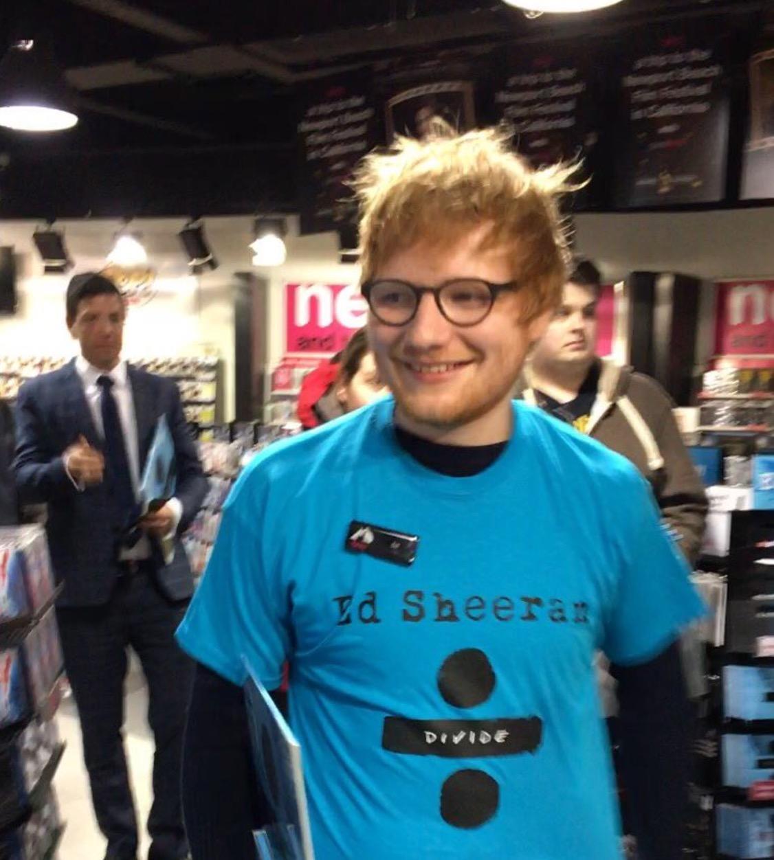 Sheehan was spotted in a store t-shirt (complete with ‘Ed’ name tag) at London’s Oxford Street store, where he bought a copy of the LP before getting behind the checkout and selling a few copies.