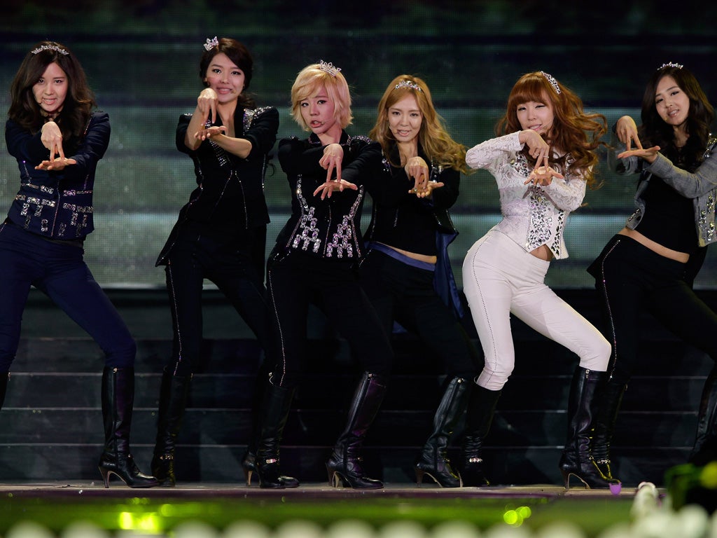 Nine-member South Korean girl group formed by SM Entertainment in 2007 who perform cute, electro-pop songs with titles like Kissing You, Gee and Oh! Hugely popular in Japan, the girls endorse Samsung and Goobne Chicken and are being primed for launch in the US and Britain.