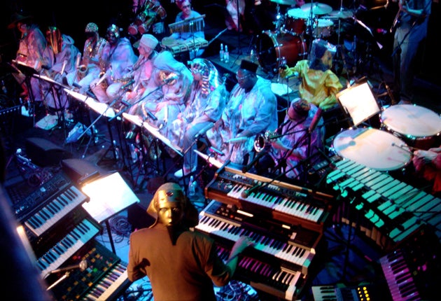 At the end, when the 16 masked and robed musicians processed up the aisle and out of the hall, singing Sun Ra's catchy refrain of "Space is the place!", you realised that the whole dream-like performance was like being in some inspired, holy-rolling church, with saxophonists playing the preacher's role.