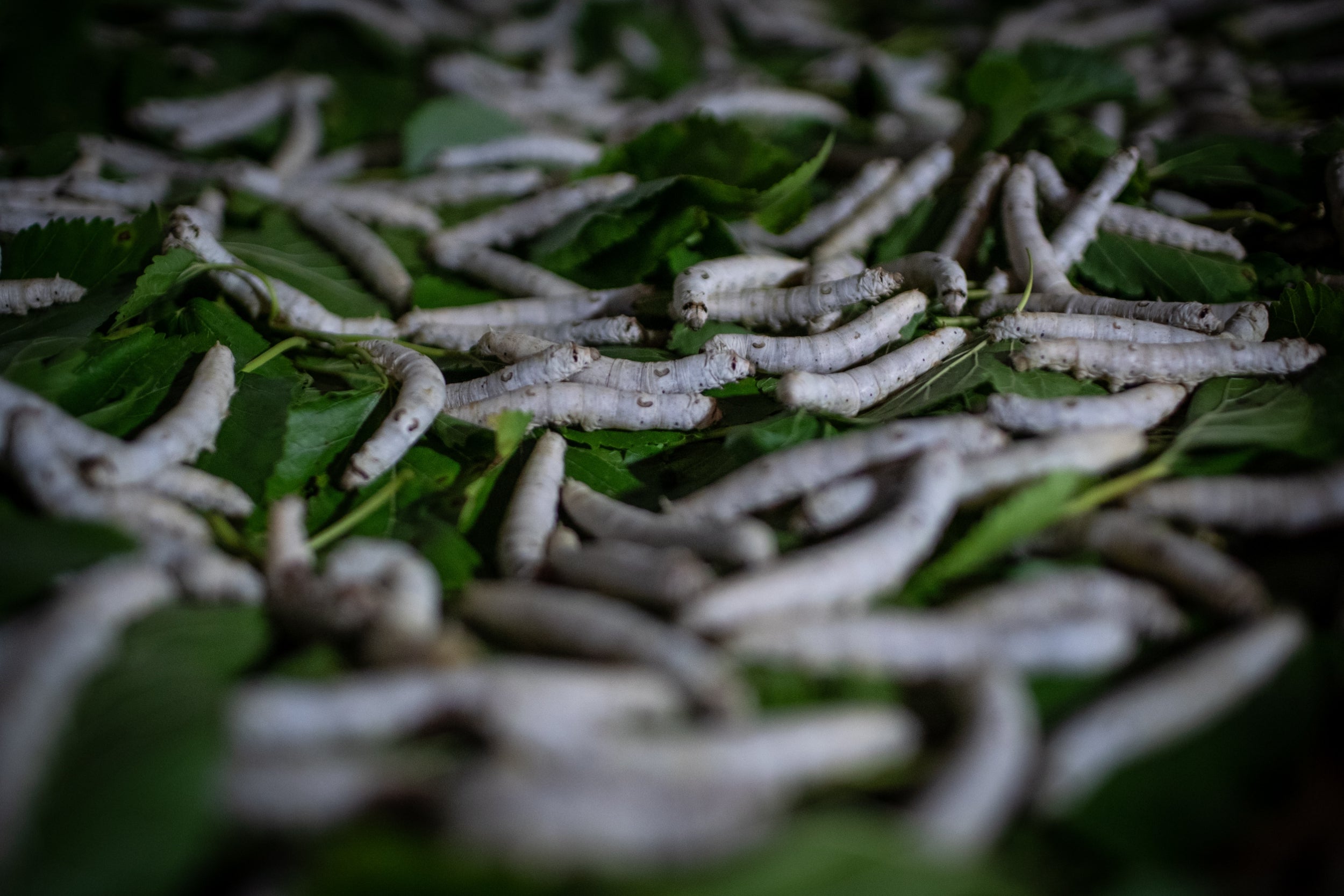 Seventy per cent of a larva’s weight consists of silk material. After four sleep phases, the larvae grow and after 45 days they turn into cocoons.