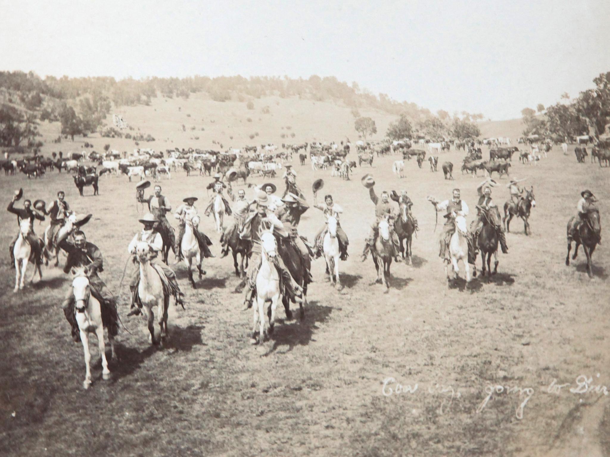 Most of the photos show life on the ranches - herding cattle and riding horses - but they also offer a glimpse of some of the small towns and the newly-built railway.