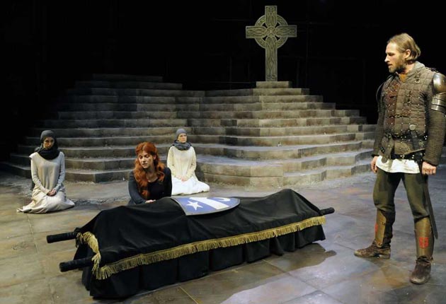 Roxana Silbert's production for the Royal Shakespeare Company is a vigorous one, with mud-stained soldiers storming on to the black stage beneath a Celtic cross, hacking away with broadswords or cheering their victory with filthy songs. Siobhan Redmond's Gruach, looking like a sexier version of Ellen Terry, lashes the English in tones as fiery as the hair cascading down her back, and Jonny Phillips is a highly sympathetic, wearily noble Siward. Yet the flag waving and rhetorical flourishes feel like decorations rather than ebullitions of passion, the winks and nudges about Afghanistan or Iraq like cheap shots (isn't it stay-at-homes, not soldiers, who ask, "Why are we here?"). Gruach seduces Siward, but in a perfunctory way, with no lasting effects. Indeed, with its brisk battles, its dance of stern-faced people stamping, Dunsinane looks a bit too much like a high-quality product of the RSC factory.