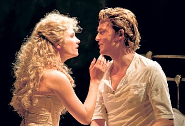 In ferociously good voice, Elena Roger, twists her natural allure into that eerie distortion of glamour: the neurotic invalid's tyrannical, manipulative pathos. She manages to make this both moving and creepily comic especially in the great scene where Fosca, from her sickbed, presumptuously dictates to the reluctant Giorgio the love letter she would like to receive from him. Officially, this character's relentless, unconditional love for him is supposed to be redemptive, cracking the hero open to true feeling. But at what cost to the sanity of David Thaxton's sensitively intelligent, ardently well-sung Giorgio who winds up a wreck?