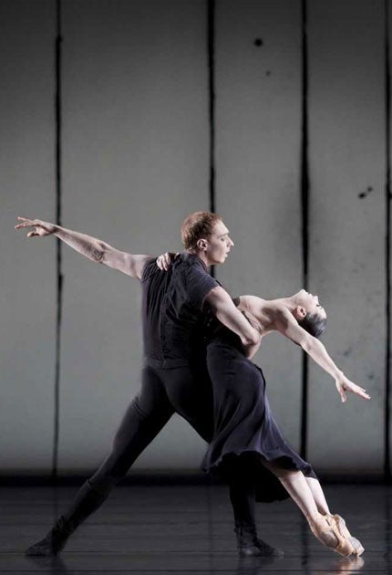 Tamara Rojo and Bennet Gartside prowl through the second movement. Rojo takes up a pose like a bird of prey, arms outstretched, head dipped, gazing fiercely upwards. The last movement brings on Laura Morera and Ricardo Cervera. They skitter through their steps so fast that they send themselves off-balance.