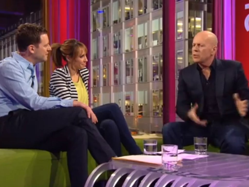 Bruce Willis has apologised for being 'boring' on the BBC's One Show, blaming jetlag.
