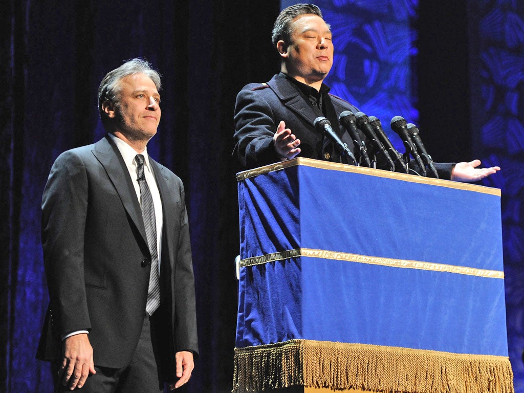The joke was typical of a night which, in its scripted elements at least, toyed endlessly with the idea of whether comedy really can make a difference. With a writing team overseen by David Javerbaum of The Daily Show, it bore all the hallmarks of that satirical programme's searingly self-reflexive wit.