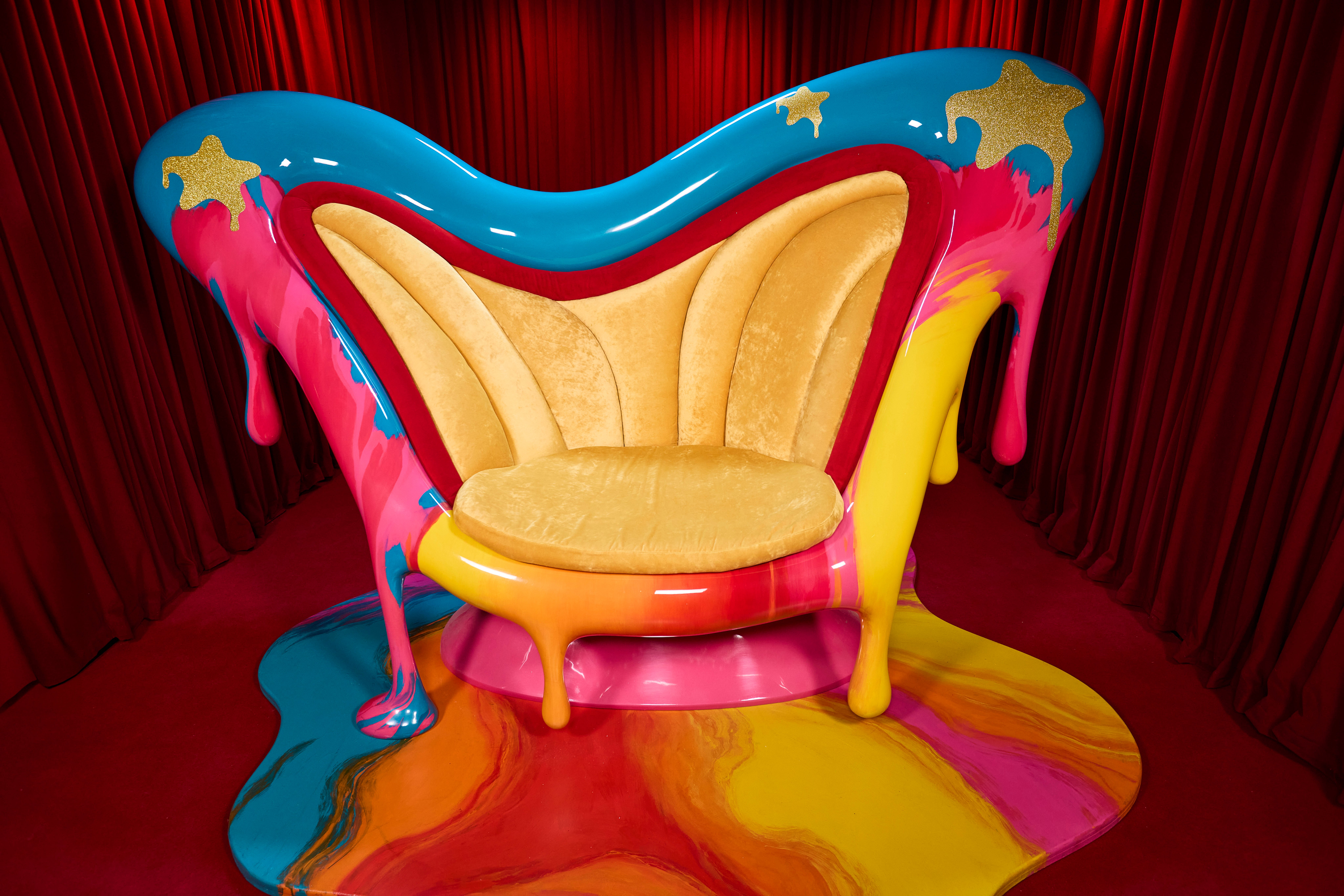 Of course, a Big Brother redesign wouldn’t be complete without a weird new Diary Room chair. This one continues the explosion in a Dulux factory theme: it’s covered in big, bold paint drips and decorated in a frankly migraine-inducing array of colours.