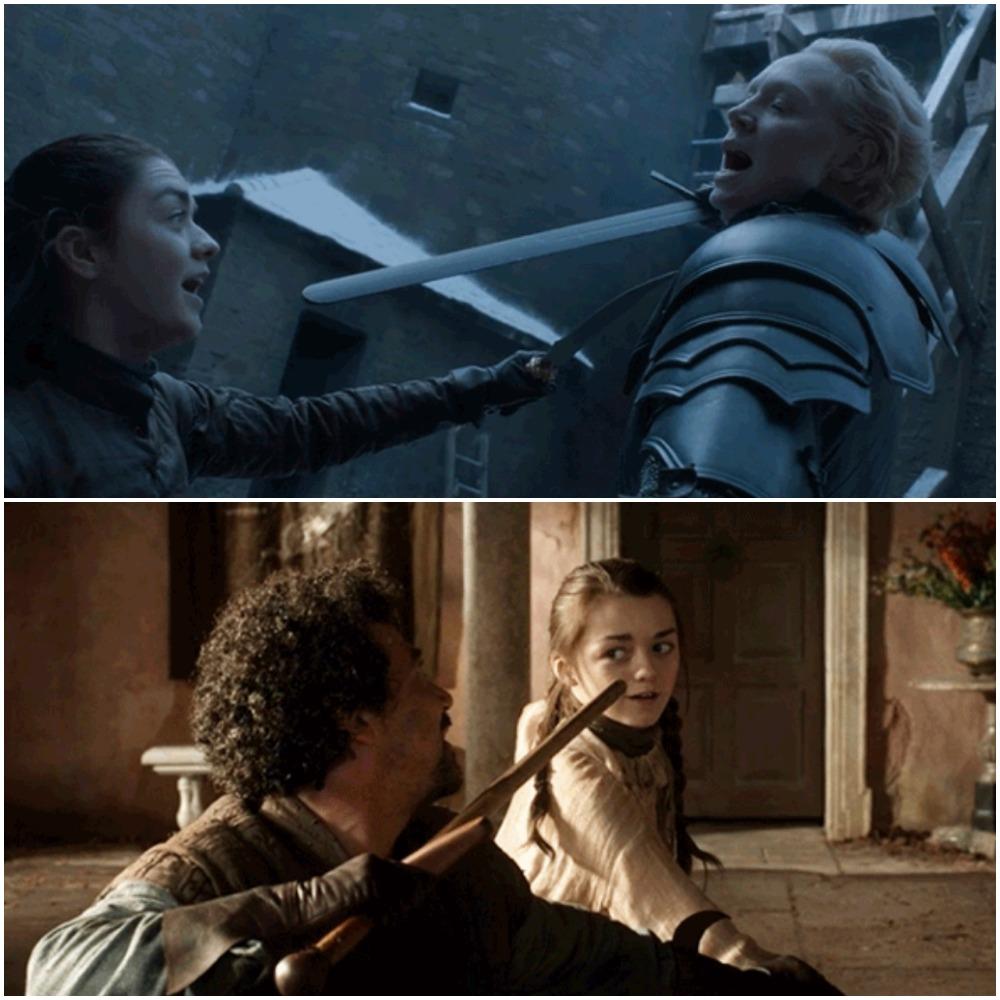 More importantly, though, comes the fight’s end, when the pair point swords at each other; A direct mirror of how Arya and Syrio Forel, her former sword master.