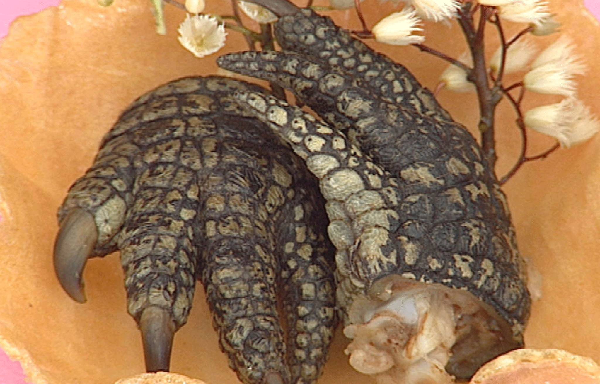 In tonight's show, Wright and Essex will crunch into pig's brain - "like chicken but soggier"- ostrich penis, scorpion, camel's toe and turkey testicles, each served on a bed of noodles and chips in polystyrene take-out boxes.