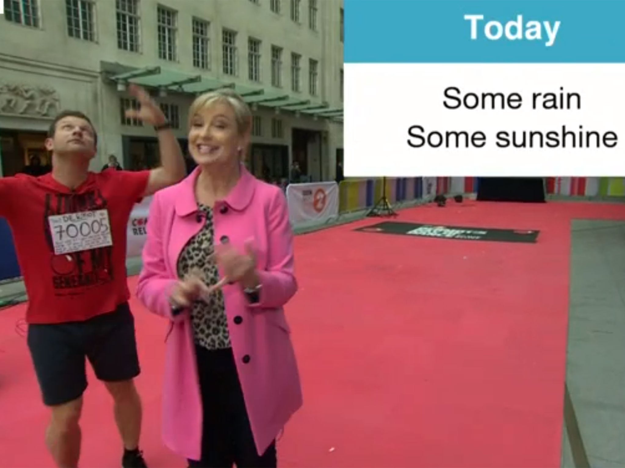 The BBC may have found a way of making people fell less gloomy about grey clouds and heavy rain: get Dermot O'Leary to dance through the daily weather forecast.