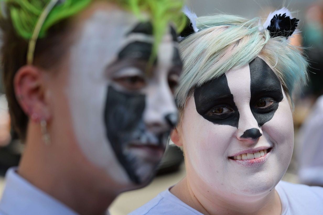A badger flash-mob protested today against a Government-led cull of the animals, outside the Department for Environment, Food, and Rural Affairs (Defra).