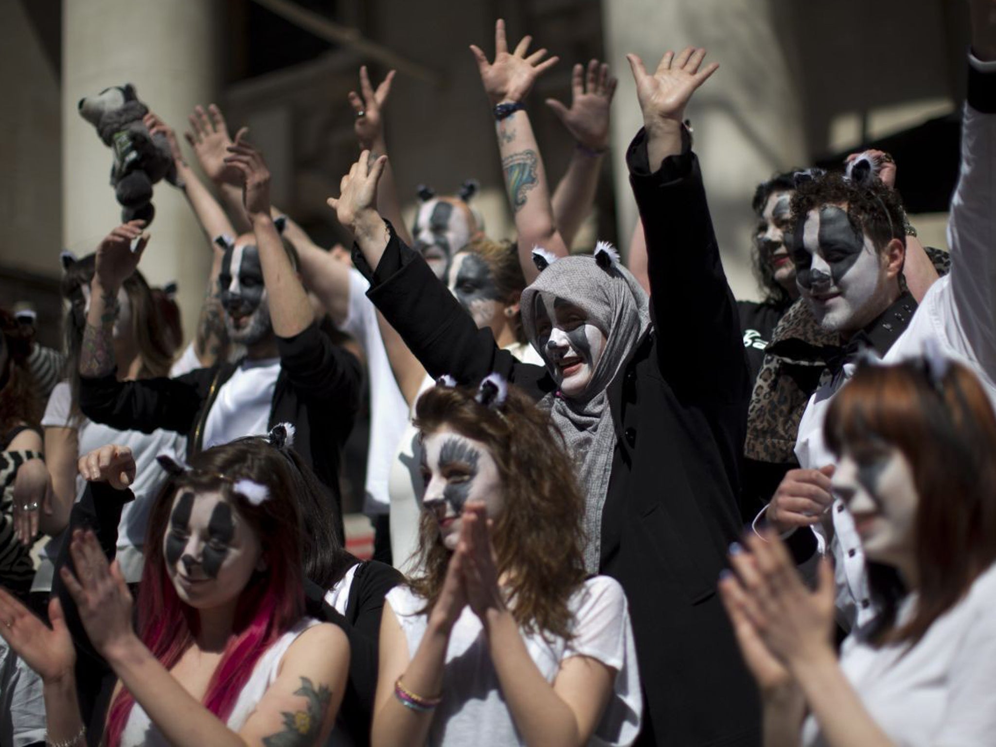 The flash-mob was the climax of an Animal Aid campaign that has run throughout the UK in Lush Cosmetics' 104 shops nationwide, and asks the public to vote against the Conservatives in the local elections tomorrow.