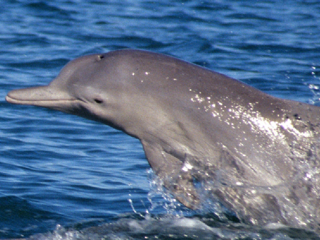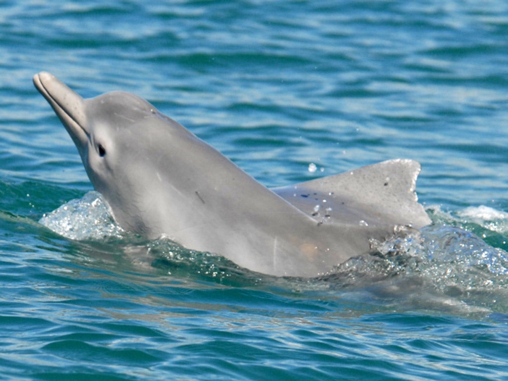 Humpback dolphins grow up to 8 feet long and range in colour from dark grey to pink and white. They generally inhabit estuaries and coastal waters and have distinctive humps in front of their dorsal fins.