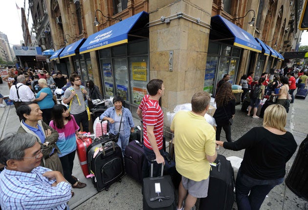 The mayor, Michael Bloomberg, reacted to the apparently reduced potency of the storm by increasing the shrillness of his warnings to residents. Many New Yorkers appeared not to be heeding a mandatory evacuation order covering reclaimed land in the financial district of Manhattan and coastal parts of the outer boroughs. Those areas, home to about 350,000 people, were due to be emptied by 5pm local time last night. "Let's stop thinking this is something we can play with," Mr Bloomberg said. "Staying behind is dangerous, staying behind is foolish and it's against the law. and we urge everyone in the evacuation zones not to wait. The time to leave is now. It isn't cute to say, 'I'm tougher than any storm'."