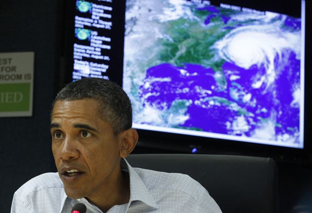 All along the coast, beaches were largely empty, save for the crews of TV news channels whose reporters competed to appear most blustered. Some thrill-seeking surfers, though, defied warnings to take advantage of the rising waves. President Barack Obama and his family cut short their holiday in Martha's Vineyard to return to Washington to ensure they did not get stranded by the storm and so as to better monitor developments. Last night, he visited the headquarters of Fema, the Federal Emergency Management Agency, responsible for storm planning, rescue and clean-up. "Don't wait and don't delay," he said. "I cannot stress this highly enough. If you are in the projected path, you have to take precautions now."