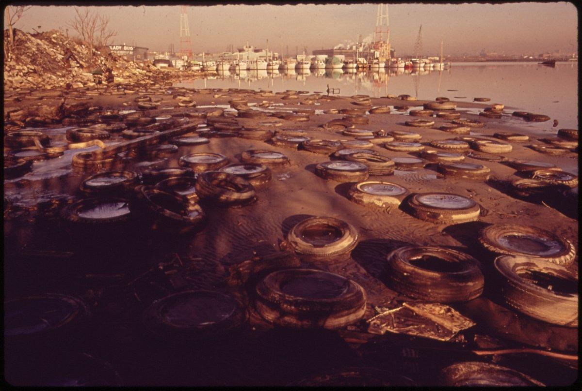 Trash and old tires littered the Baltimore Inner Harbor in 1973. The EPA regulates waste disposal now, including in coastal locations. EPA cleanups in the harbor over the years have targeted dangerous chemicals