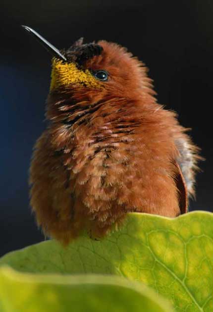 The firecrown's unique traits include the widest differences in physical appearance between the two sexes of any hummingbird – so different are the males and females compared to other hummingbirds they were originally thought to be two species. Firecrowns also exhibit the charming habit of saving valuable energy by sometimes grasping on to the underside of a nectar-filled flower with their feet to take a rest from hovering.