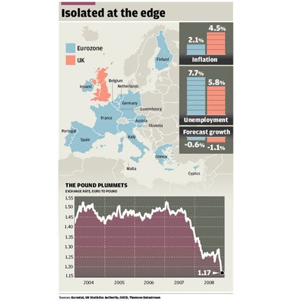 Can we manage outside the euro?Probably, as we have before now. Britain has seen many economic crises before, and no one ever suggested that abolishing the pound would solve anything. The fundamentals of this recession remain, and it might be more honest, and less politically comprising if we continued to simply borrow our way out of trouble, even if that might eventually mean crawling to the IMF, or indeed our dour European partners for assistance. Even Iceland hasn't had to join the euro.