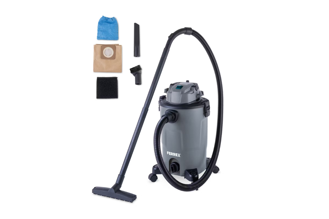 This vacuum from Aldi makes cleaning a breeze. It has a strong blowing function, handy water drainage on the tank and built-in storage for accessories and the cable. You’ll also get a 1.8m suction hose, two extension tubes, multiple nozzles for different surfaces, and washable filters for both wet and dry cleaning. With a 1200W motor, strong 16KPA suction and a 25l tank, it’s a mammoth of a vacuum capable of handling the big tasks.