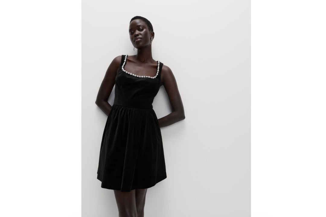 M&S Cotton rich velvet embellished mini skater dress: Was £60, now £42, Marksandspencer.com