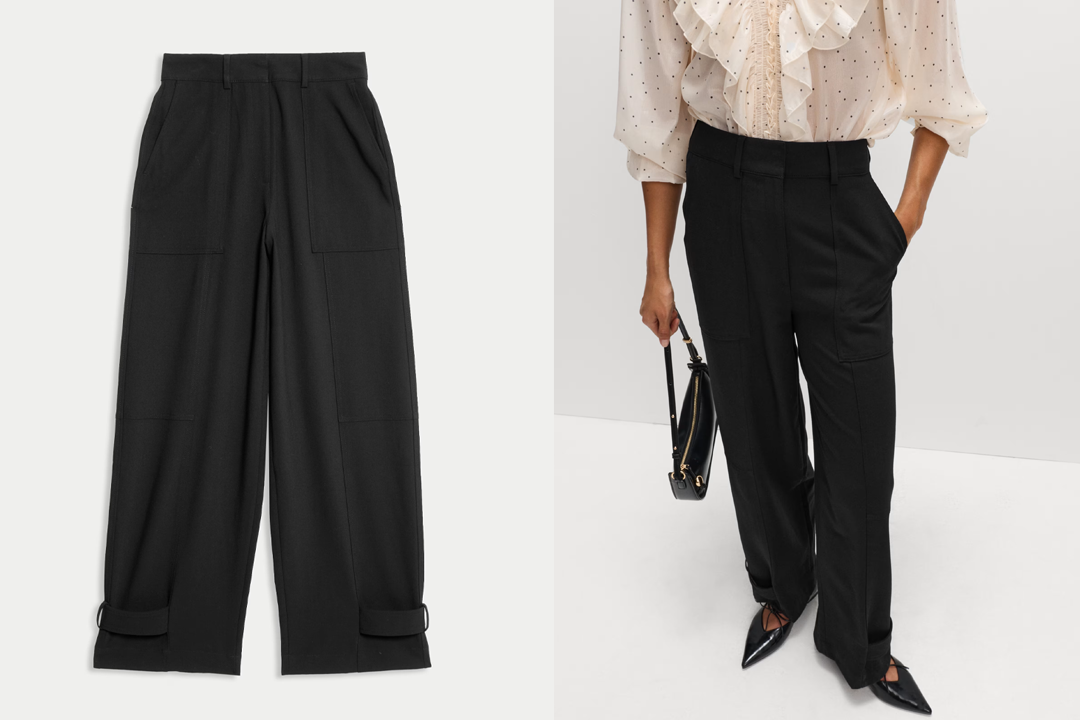 Now half price in the M&S sale, these utility-style trousers offer a twist on traditional officewear. With a high-rise waist silhouette, straps at the cuffs and utility patches, they're regular in fit, and said to offer some stretch. At just £20, they're a steal.
