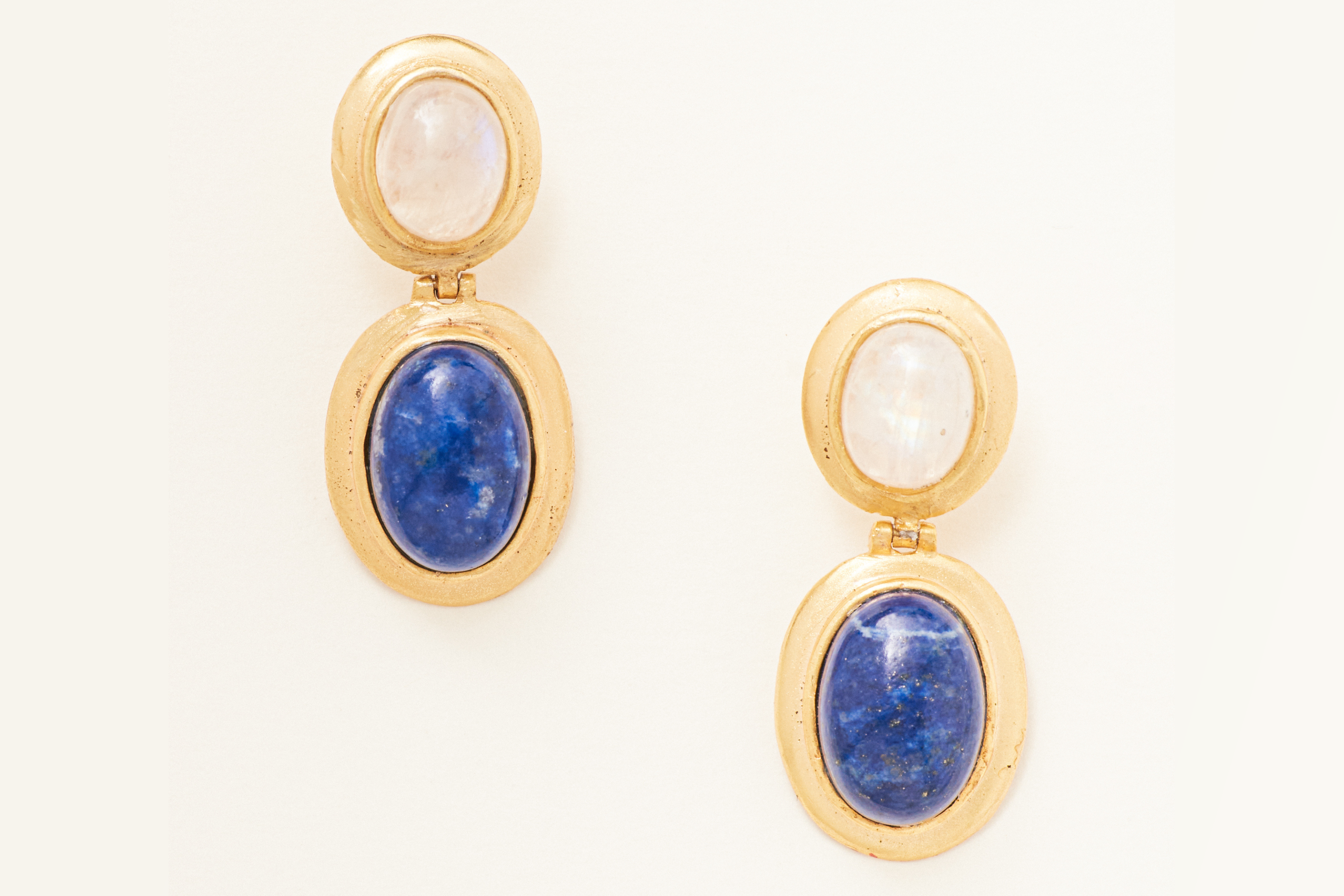 Much like the rest of the brand’s collection, the gold-plated earrings that Kate wore are handmade. The blue lapis stone is complimented by the milky blue hue of the moonstone to create an eye-catching finish. The chic style can be tailored to suit any occasion.