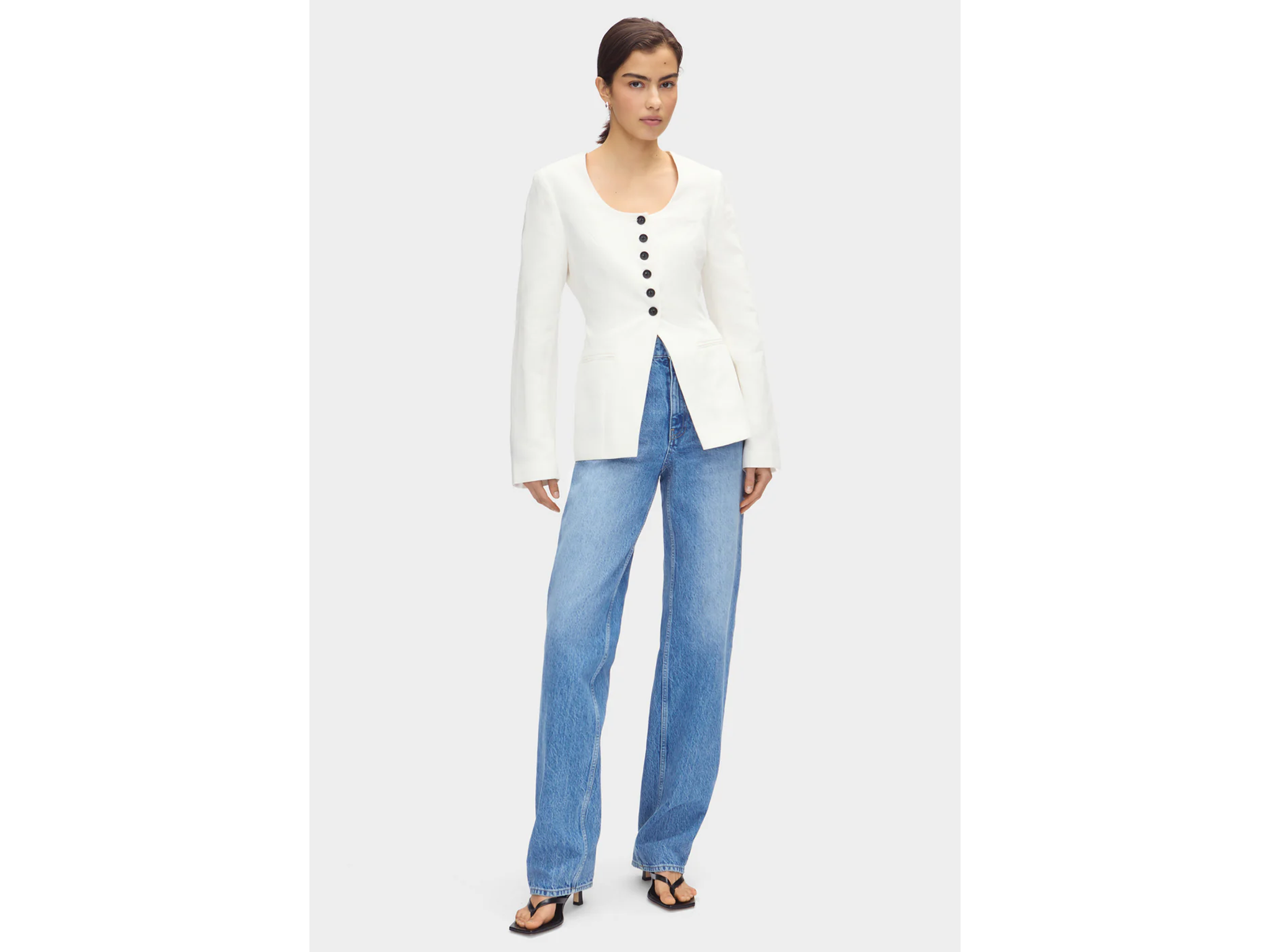 Aligne’s bestselling Daphne blazer has been given an upgrade for summer 2025. Now crafted from a linen and cotton blend for a lightweight feel, the blazer features the brand’s signature cinched-in waist, A-line silhouette and flattering scoop neckline. Available in a crisp Wimbledon white finish, the black buttons add sleek detailing.