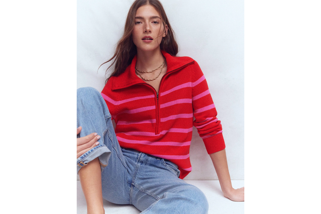 Boden’s quarter zip up style is one of its most recognisable silhouettes. Offering plenty of versatility when it comes to styling, the jumper can be worn as a sleek turtleneck or with a wide spread collar. The design is classically Boden, with a red and pink striped finish that adds some joyous shades to your winter wardrobe. Perfect for bundling up-in during the colder months, the breathable cotton design also serves as a transitional staple.
