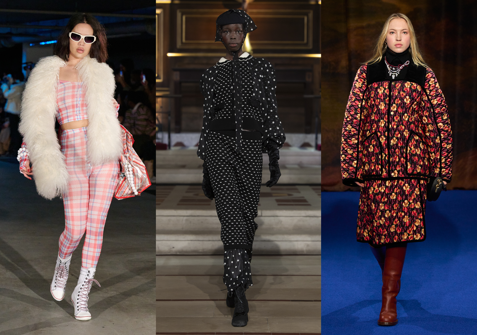 Quiet luxury has been replaced by prints a gogo this season, with designers injecting a playful energy into their autumn/winter collections. Bora Aksu took inspiration from Empress Elisabeth of Austria for his gothic romantic show and put threaded polka dots, floral motifs and pinstripe through his characteristically delicate, fanciful collection. Meanwhile, Sinead Gorey’s show was gloriously garish – pink check, lipstick motifs and tartan patterns were sent down the runway to house music. Though Burberry kept it classic with herringbone and tartan, Daniel Lee did inject colourful florals into his outerwear collection to brighten up the catwalk.