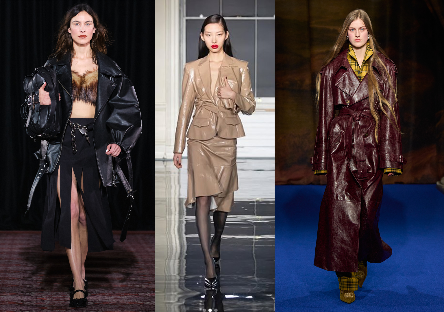 For replicating Simone Rocha’s runway looks, M&S’s leather bomber (£225, Marksandspencer.com) or laidback jacket (£69, Marksandspencer.com) are both perfect. While River Island’s leather A-line midi skirt (£42, Riverisland.com) is a nice take for the office. Kitri’s vinyl coat (£220, Kitri.co.uk) is already doing the rounds on Instagram and would make a great alternative to Burberry’s hero burgundy leather trench.