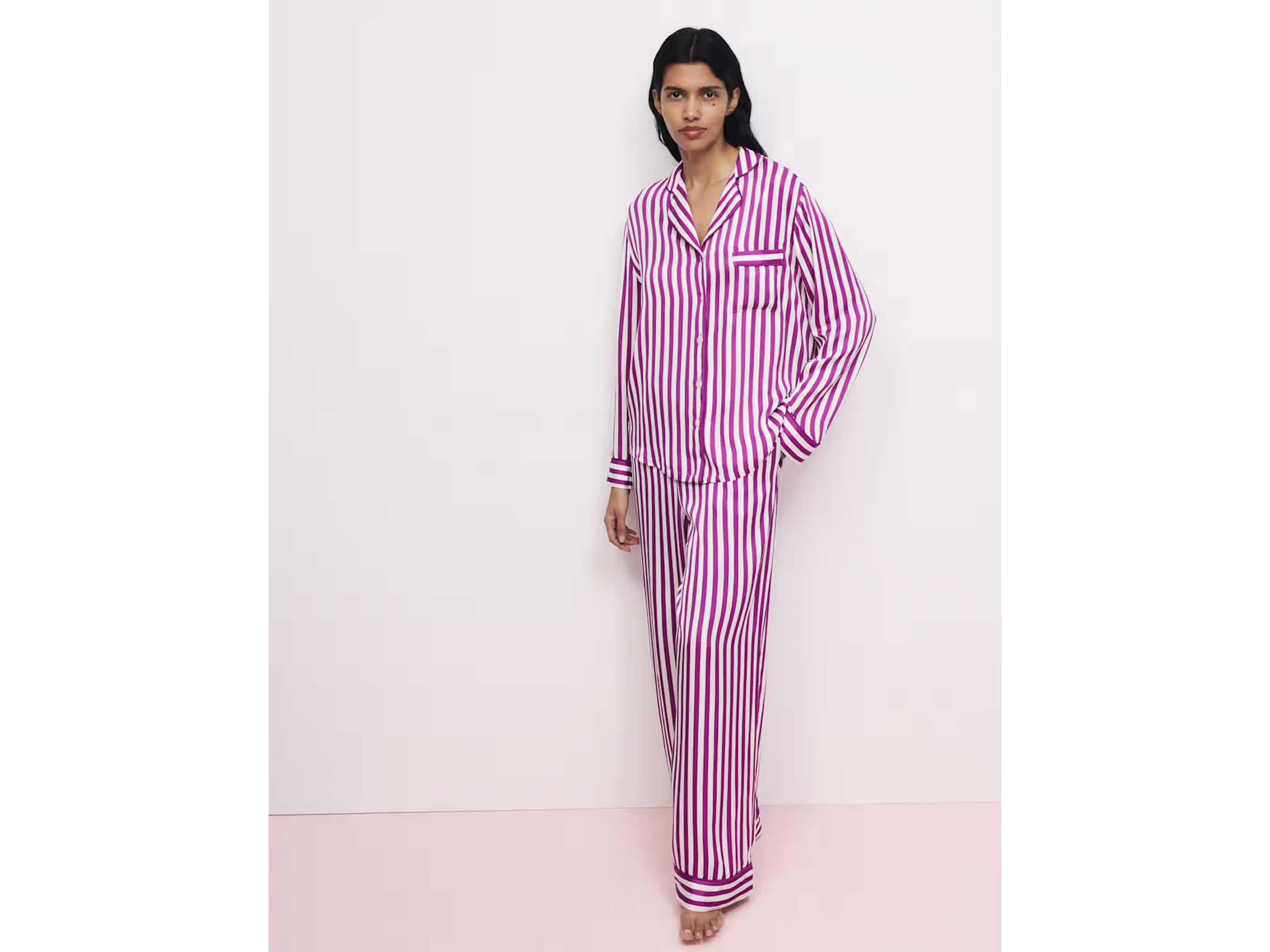 This “shortie” set from M&S x Olivia Von Halle is perfect for the spring months. Crafted in a regular fit from smooth and floaty viscose, it’s designed to drape beautifully just like real silk. Combining comfort and style, the striped pink print is elevated by piped trims for a luxurious touch. The short sleeve top has branded buttons, a classic revere collar and chest pocket, while the shorts boast an elasticated drawcord waist.