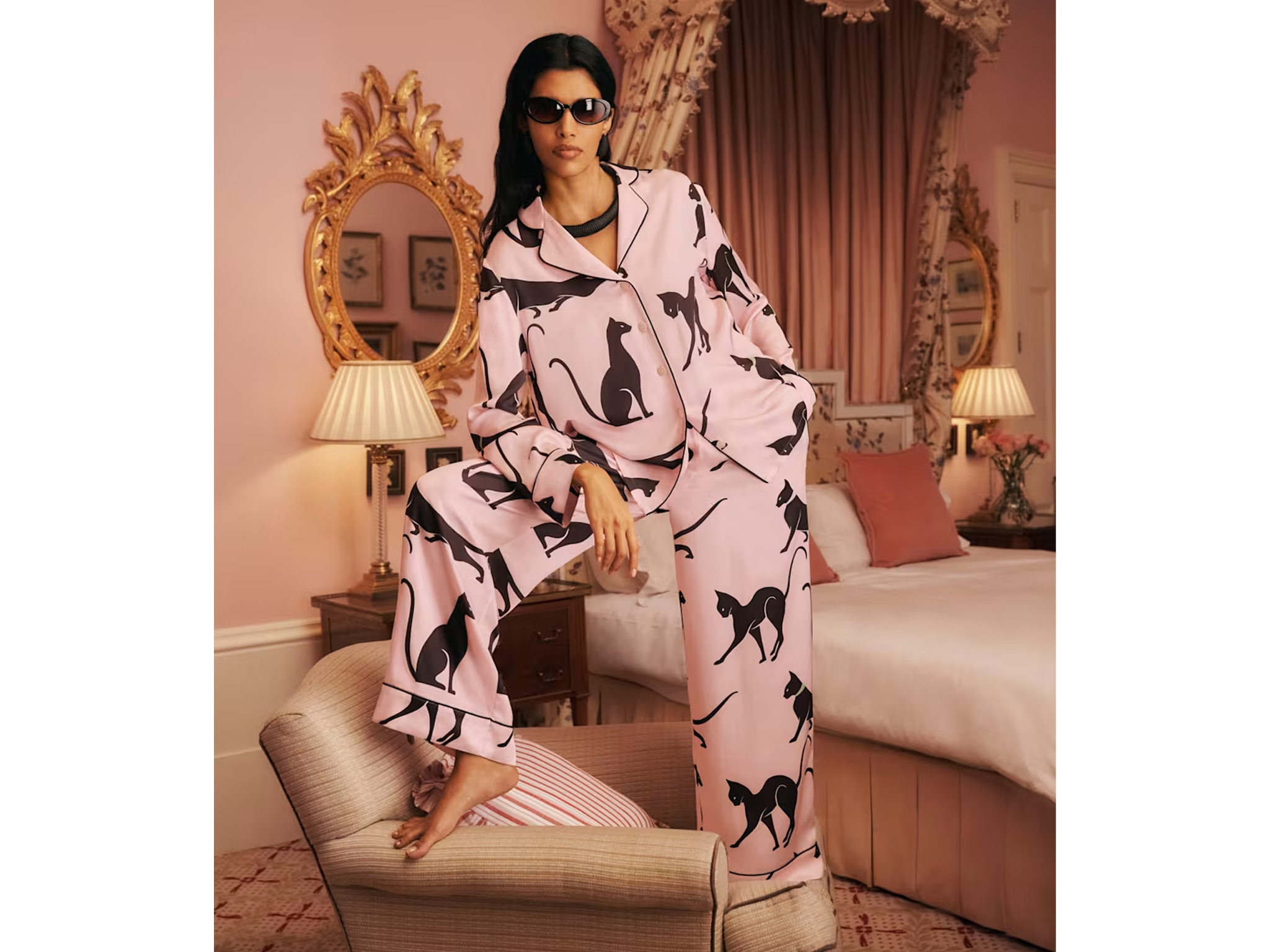 M&S x Olivia Von Halle the cat print pyjama set: £55, Marksandspencer.com