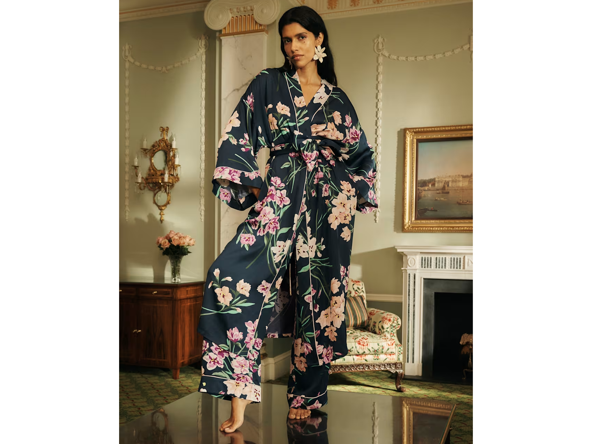 After a long day at work, imagine coming home and cocooning yourself in this luxurious wrap. The maximalist floral print is inspired by 1920s’ loungewear, designed with a regular fit and secured by a sash at the waist. Complete with wide sleeves, deep cuffs and contrast piping to add to the premium feel, it’s crafted from soft viscose fabric.
