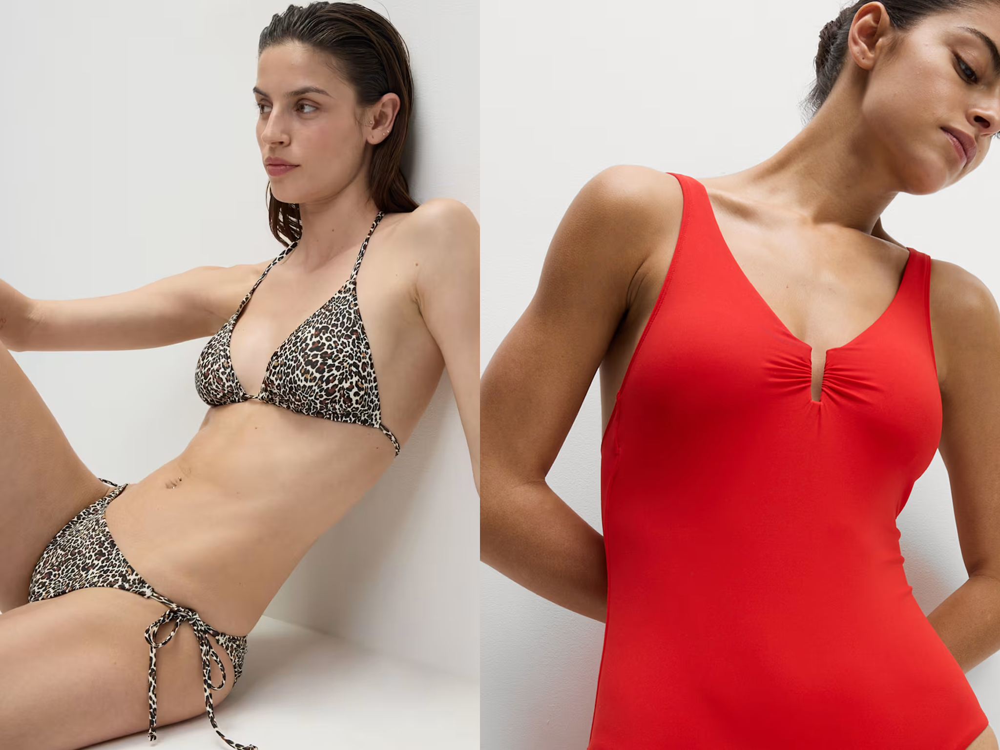 M&S has long been a favourite for swimwear, thanks to its size inclusivity (its one-pieces come in petite, regular and long lengths) and commitment to quality fabrics at affordable prices. This season, it’s embraced the animal print trend with a triangle leopard bikini set (£12.50, Marksandspencers.com) and nodded to Hunza G’s viral styles with this textured scoop neck swimsuit (£29.50, Marksandspencer.com).