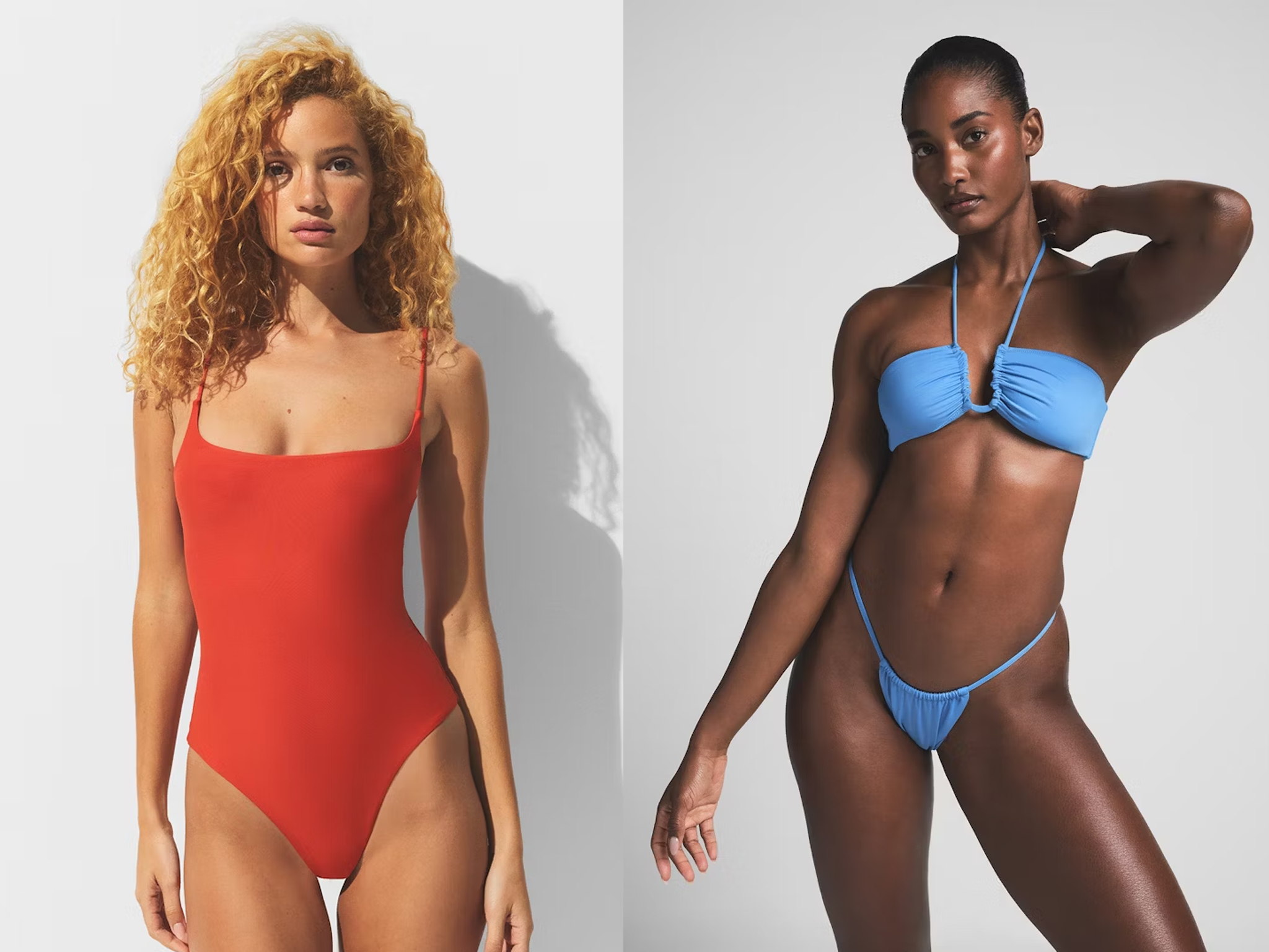 Just like its clothing, & Other Stories’ swimwear is considered and classic. From elevated one-pieces like this tie-shoulder red style (£57, Stories.com) to this textured square-neck bikini top (£27, Stories.com), its styles come in various colours to transcend trends.