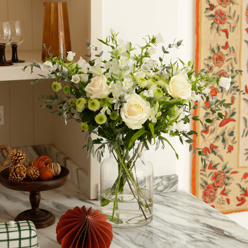 The Freddie’s Flowers Christmas collection spans across festive bouquets and elegant tablescape sets, with seasonal colours and festive details to explore. You can also choose between letterbox, classic and showstopper size options. Plus, your gift recipient will find handy arranging tips in their delivery. Keep reading for some thoughtful last-minute Christmas bouquets to deliver festive joy in time for the big day.
