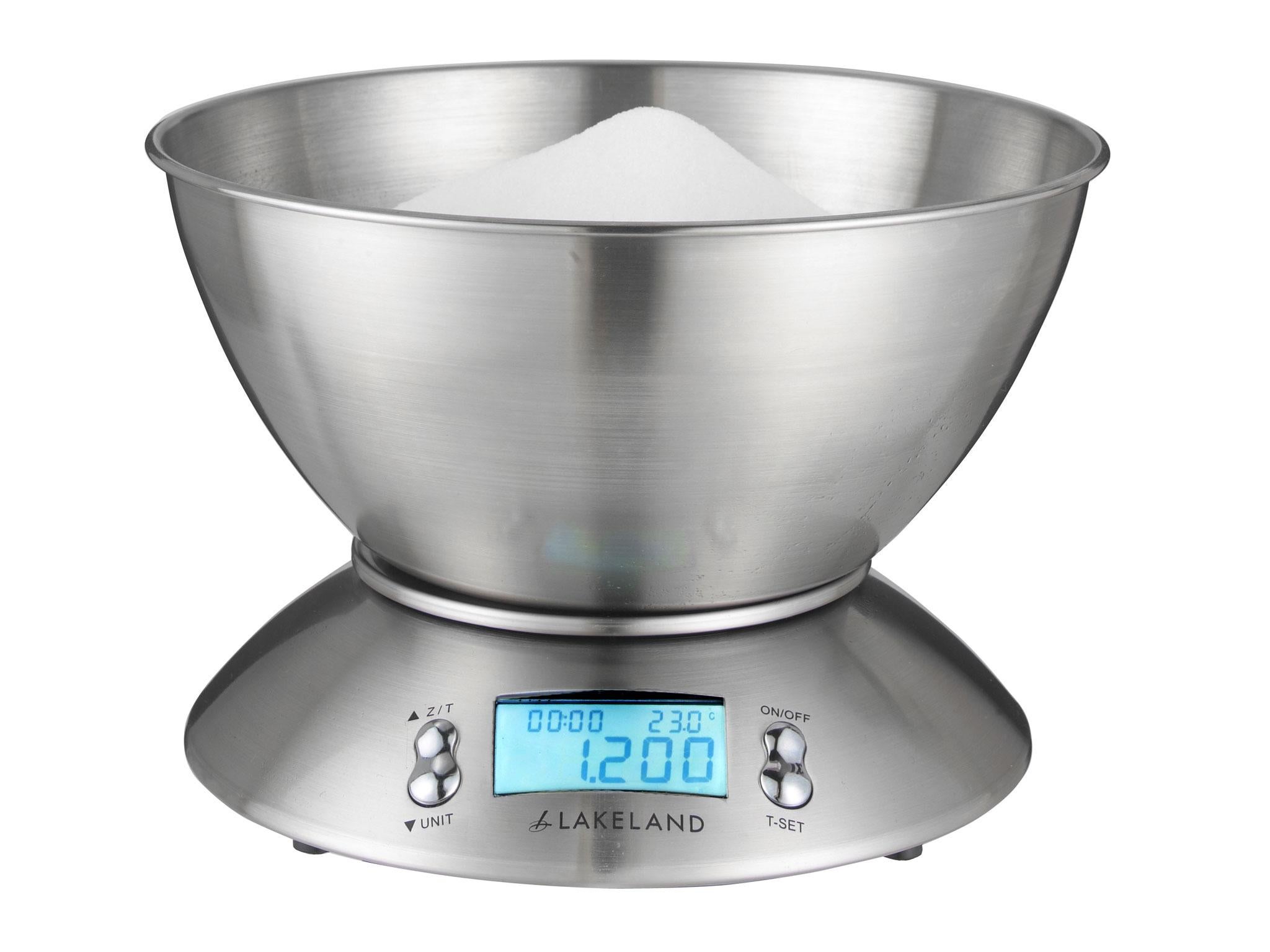 These brushed stainless steel scales are easy to use, with no complicated instructions to follow, and we found them easy to keep clean too, with a dishwasher-safe bowl. The add-and-weigh function is a godsend for keen bakers and there’s a clear LCD display, which even tells you the room temperature – just in case you were wondering why your butter is going hard before your eyes. The bowl fits over the base for storage.