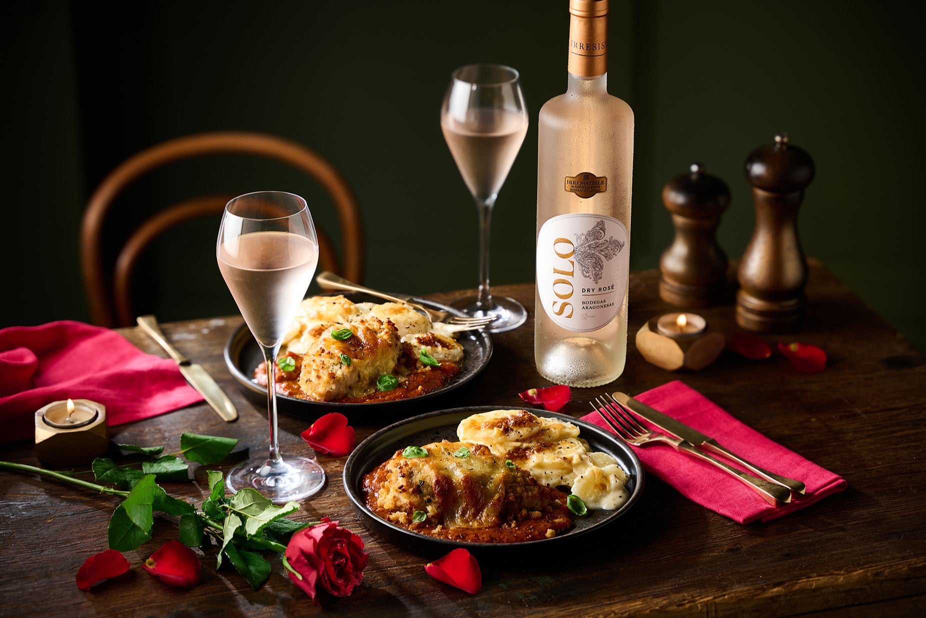 Among the starters, there’s vintage cheddar and leek tarts, scallop gratin, tempura king prawns, a vegan antipasti platter and more. Then, for the main event, you can choose from sirloin steaks with heart-shaped butter, duck legs with cherry teriyaki glaze, or, if you or your date are eating plant-based, there’s a mushroom wellington. Meanwhile, dauphinoise potatoes, hasselback potatoes with pink peppercorn butter, and creamed spinach are among the dishes to devour with your main.