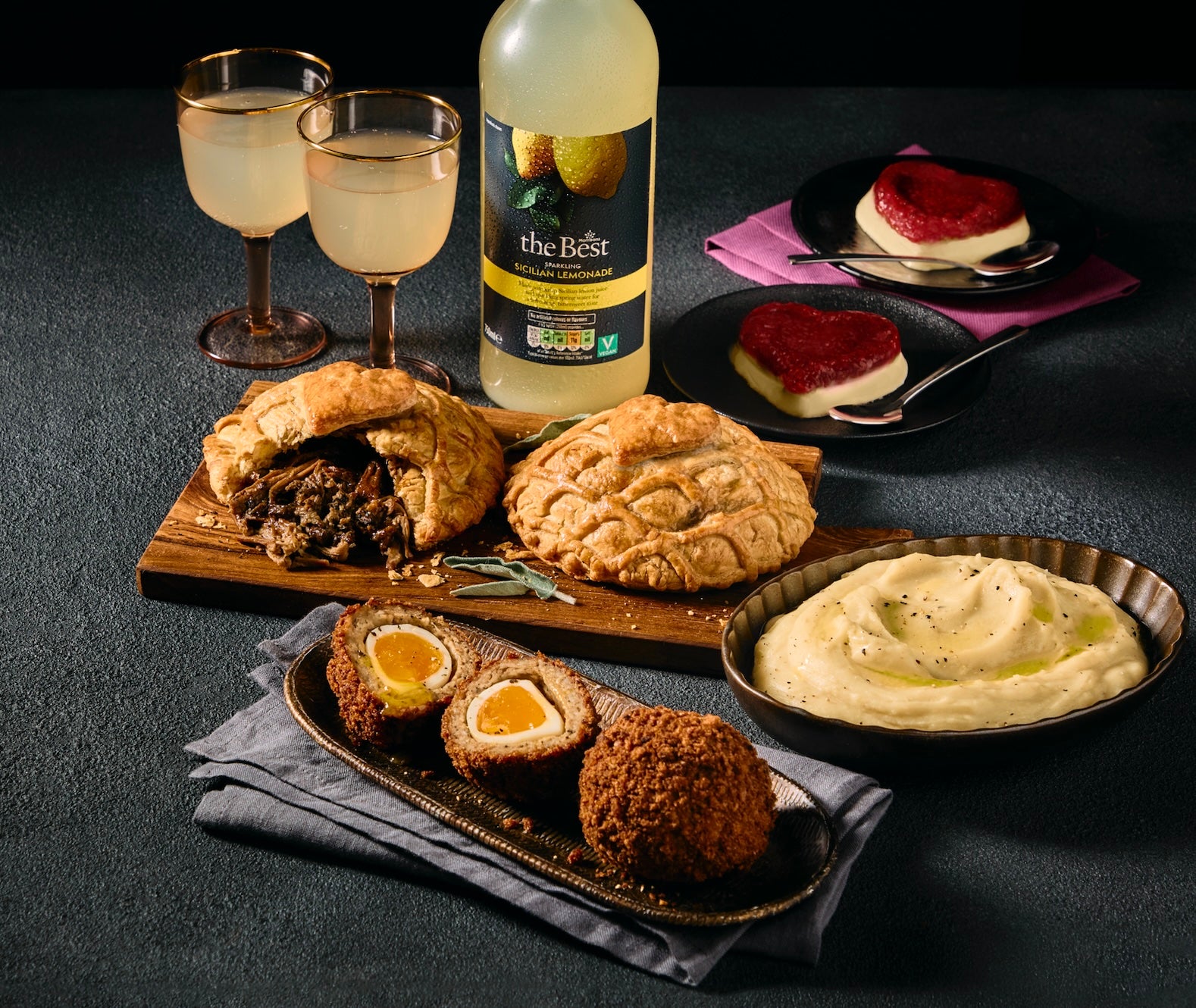 For your main, choices include chicken ballotine with parmesan and wild garlic, mushroom stroganoff pies and seabass with king prawn and champagne sauce, which is said to be the perfect match with a glass of crisp white wine. To complement these dishes, Tesco’s sides this year include the likes of creamed spinach, three cheese cauliflower gratin, and heart-shaped sea salt and black pepper rosti.