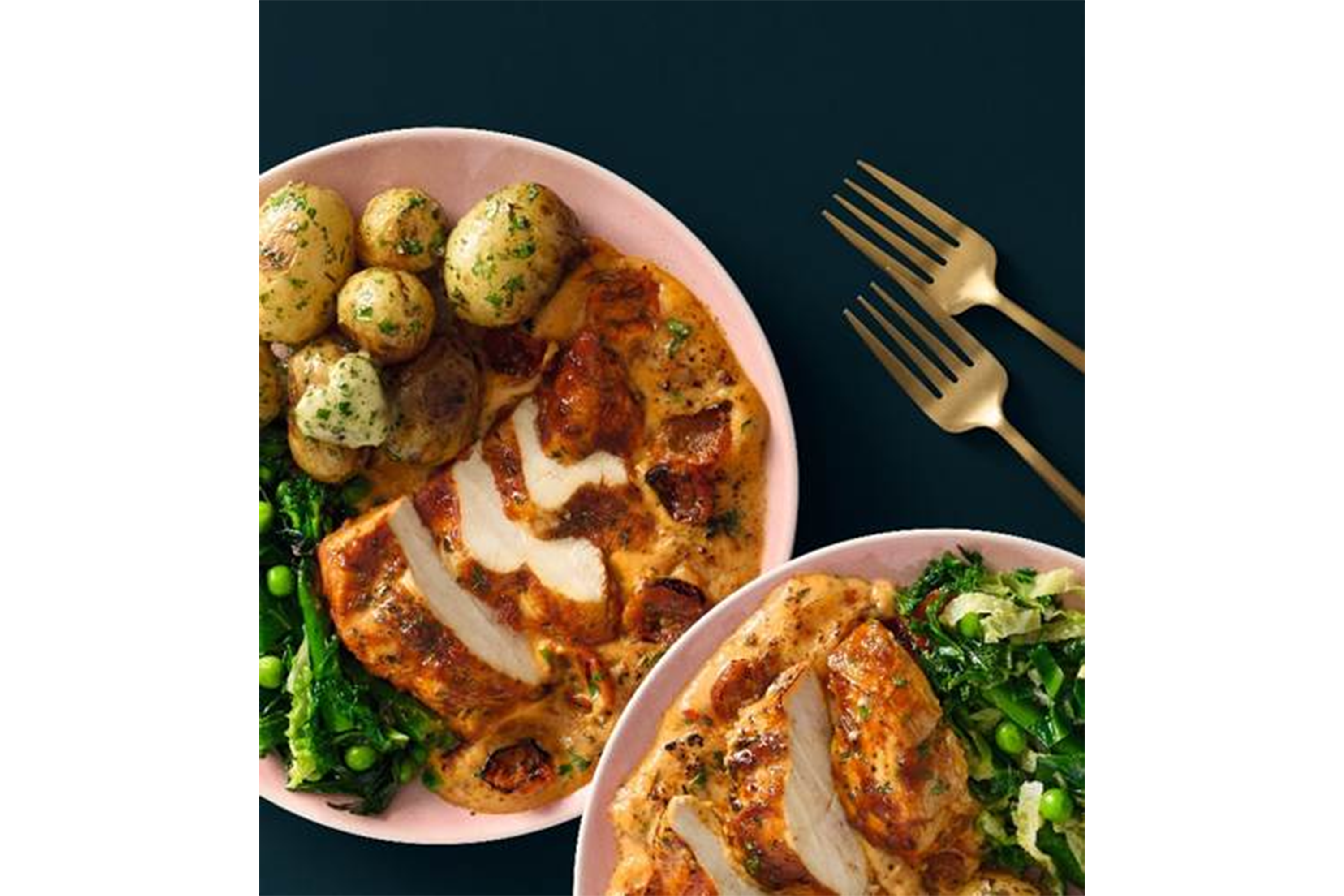 Tesco’s sides include an array of potato dishes – from triple-cooked fries topped with parmesan, baby potatoes and sweet chantenay carrots and a heart-shaped rosti. There’s also samphire, petit pois and sliced cabbage with a mint dressing.