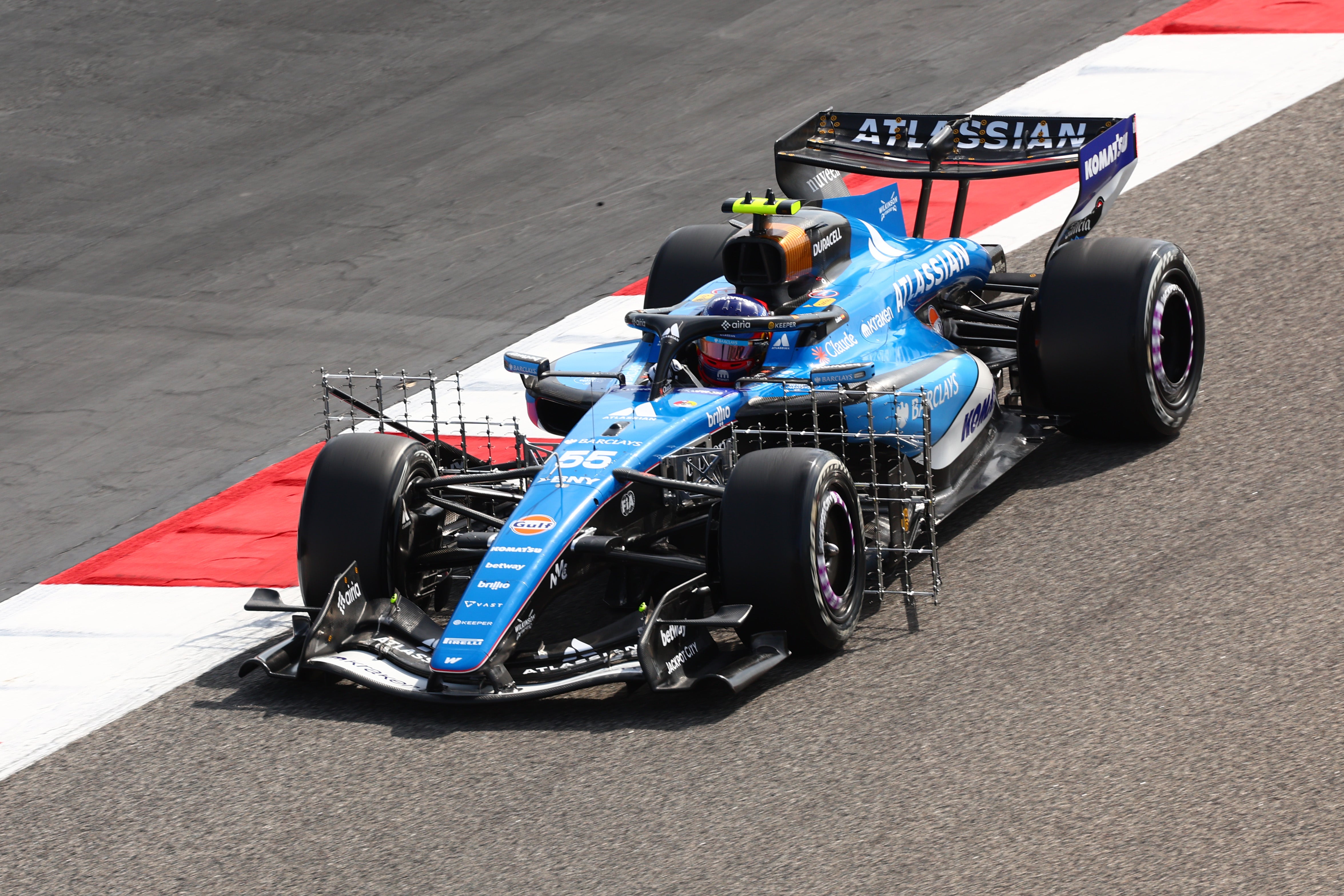 Plenty of cars out on track in Bahrain but one particularly interesting one is Carlos Sainz in the Williams.