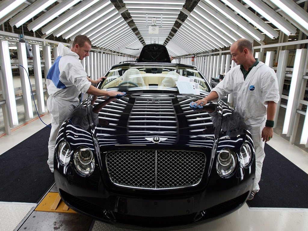 The luxury car maker, based in Crewe and owned by Volkswagen, said yesterday that it sold 7,003 cars last year, an increase of 37 per cent on the previous 12 months. Sales accelerated throughout the year, with December producing the second-best monthly total of 1,059, up 69 per cent on the same month in 2010. "It has been a tremendously good year for Bentley," said the company's chief executive Wolfgang Dürheimer.