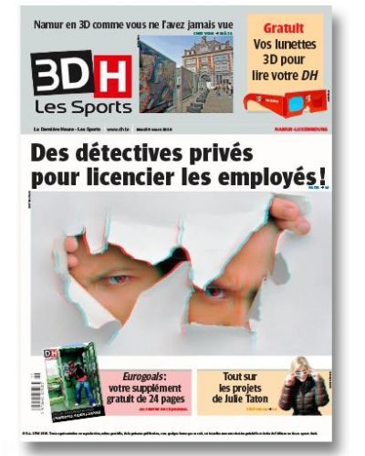 All the photos and adverts in La Derniere Heure's special edition were treated to give them the three-dimensional effect when viewed through the different lenses of the kind well-known to 3D filmgoers.