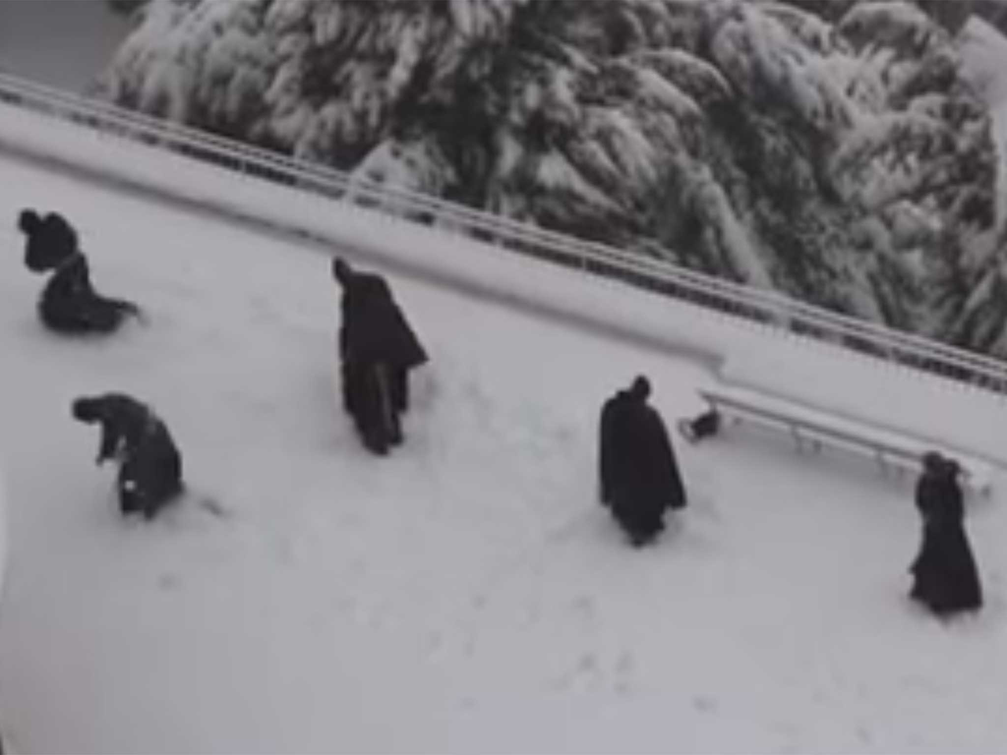 Franciscan monks filmed in snowball fight overlooking Jerusalem
