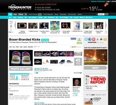 The week's top five most popular sporting trends on March 16 as selected by Trendhunter.com include top boxer Manny Pacquiao's training shoes, protection for cyclists' feet and frames, and a news service that scours twitter for MMA headlines.