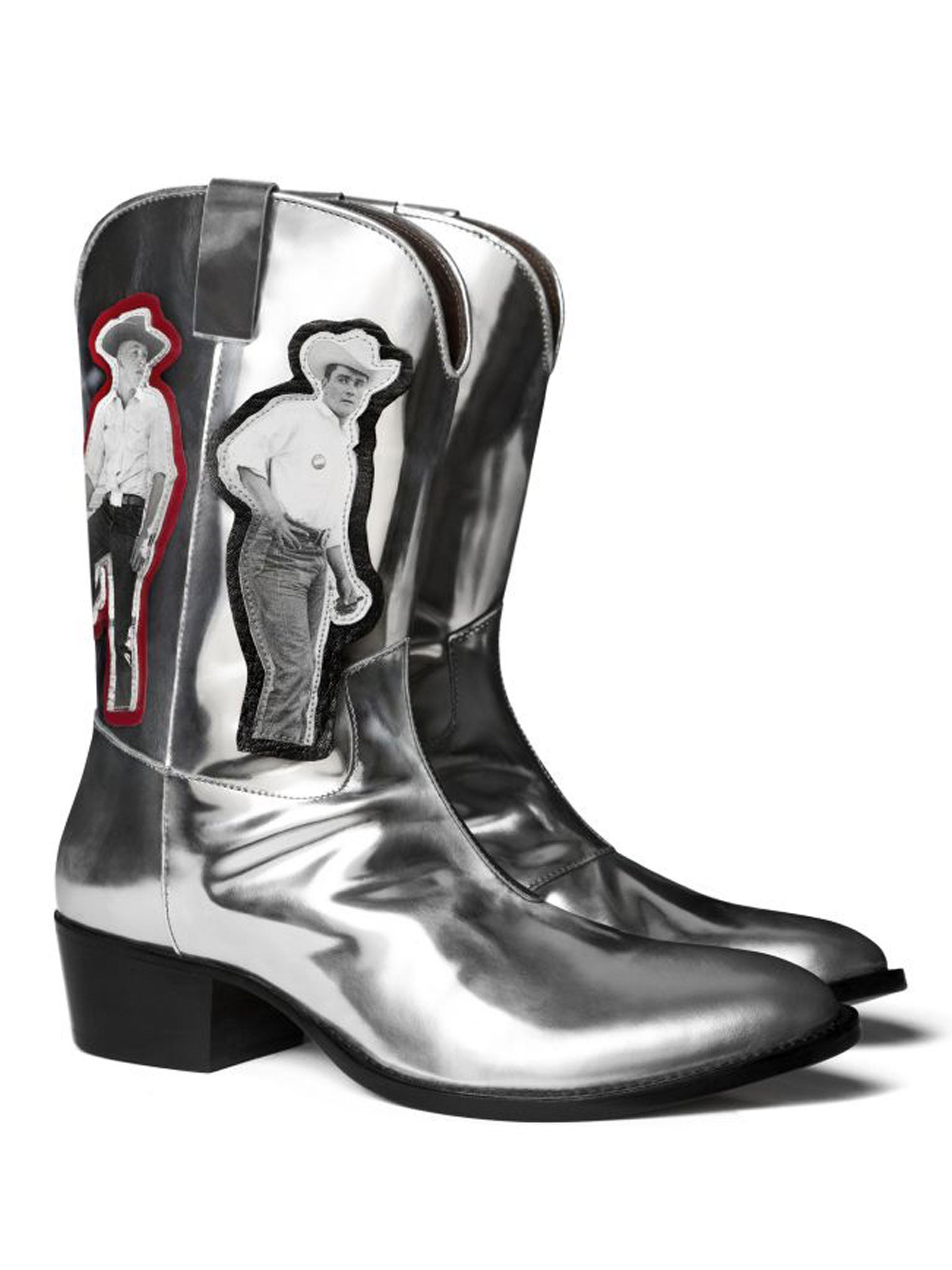Designed by Acne’s Jonny Johansson, it features striking silver boots emblazoned with one of the portraits of a cowboy, and T-shirts, vests, and shirts similarly adorned with prints from the book. “My first idea was to design a pair of boots, but I found the images so strong that I wound up creating an entire collection around them,” says Johansson.