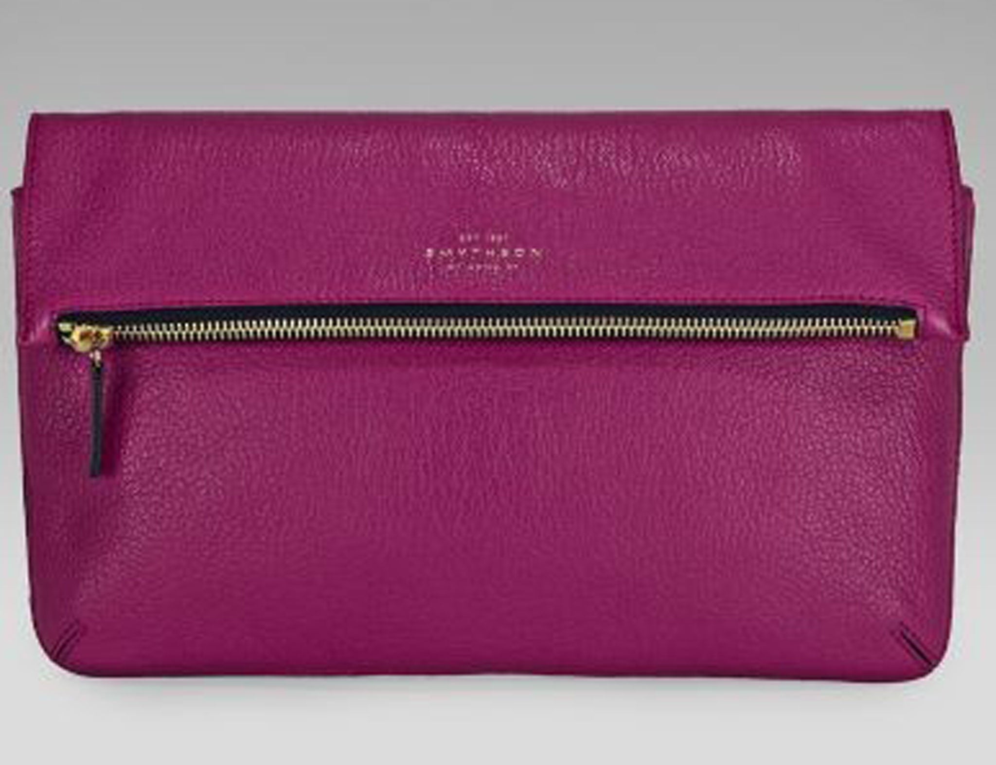 This hot pink “chameleon” clutch with a detachable shoulder strap is just the ticket for when you need to add a hit of colour to your look. The understated style is a good example of how this traditionally eveningwear accessory can also work with daywear.