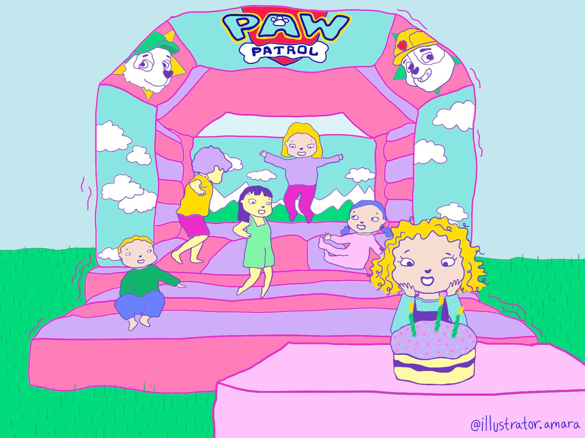 I’m in the grip of an identity crisis. Around here parents will spend more money on their pooch’s party than I will on Lola’s. I start to panic and search online for a Paw Patrol bouncy castle, which at least will cover the dog poo-infested garden and provide a more dramatic backdrop. But when it’s delivered by a half-wit with dirt all over his boots, which he treads all over my clean floor hours before the party, I start screaming at the kids to be quiet and let me clean the place, which I do with the intensity of somebody escaping a plane crash.