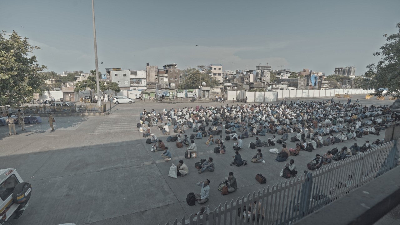 Filmed over a six-month period, the documentary opens with drone footage of a dystopian Mumbai on the first day of lockdown, which was ultimately extended in phases until 31 May 2020. The city’s bustling, sea-facing promenade, Marine Drive, is completely deserted. Rows of billboards urge caution against a deadly new virus – “Corona” – and the usually packed local trains are parked quietly at the Chhatrapati Shivaji Terminus. A civic official sprays sanitiser along the length of an underground complex, and construction sites lie abandoned.